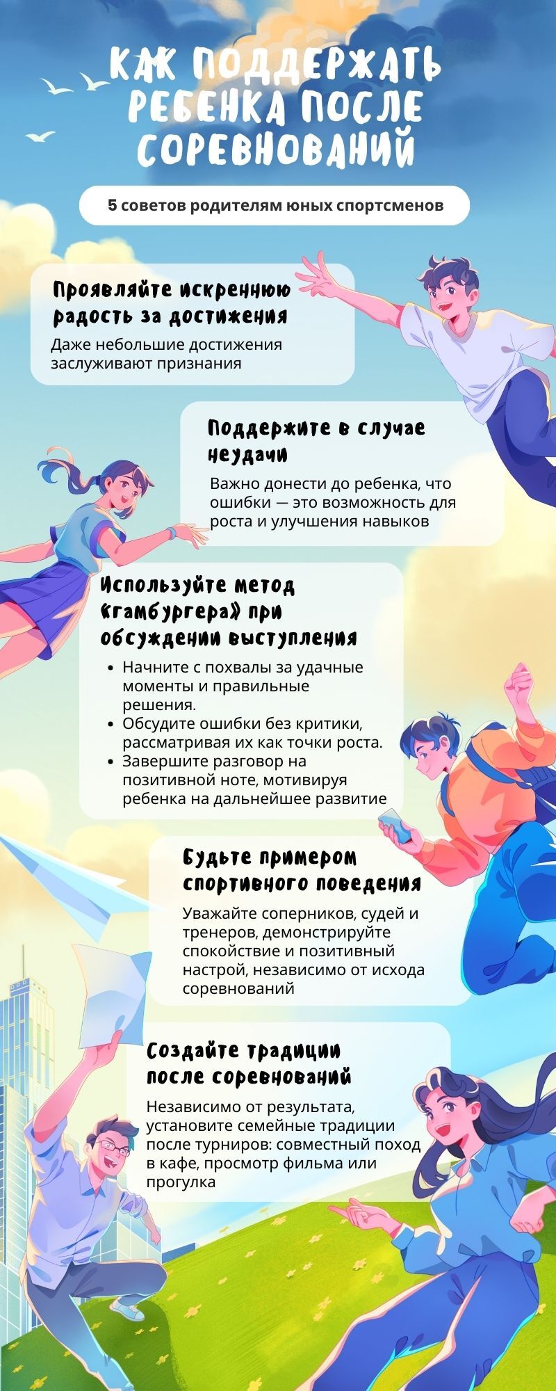 Помните, что ваша реакция на успехи и неудачи ребенка формирует его отношение к спорту и влияет на его желание продолжать тренировки. Поддерживайте, вдохновляйте и помогайте ему расти, превращая каждое соревнование в ценный опыт.