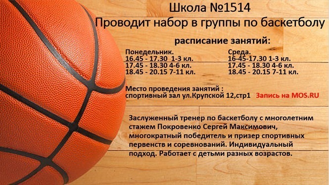 Продолжается набор в секцию баскетбола. Кружок открыт для ребят с 1 по 11 класс. Занятия проходят дважды в неделю по 45 минут, и каждый тренинг — это шаг к уверенной игре и спортивному успеху.