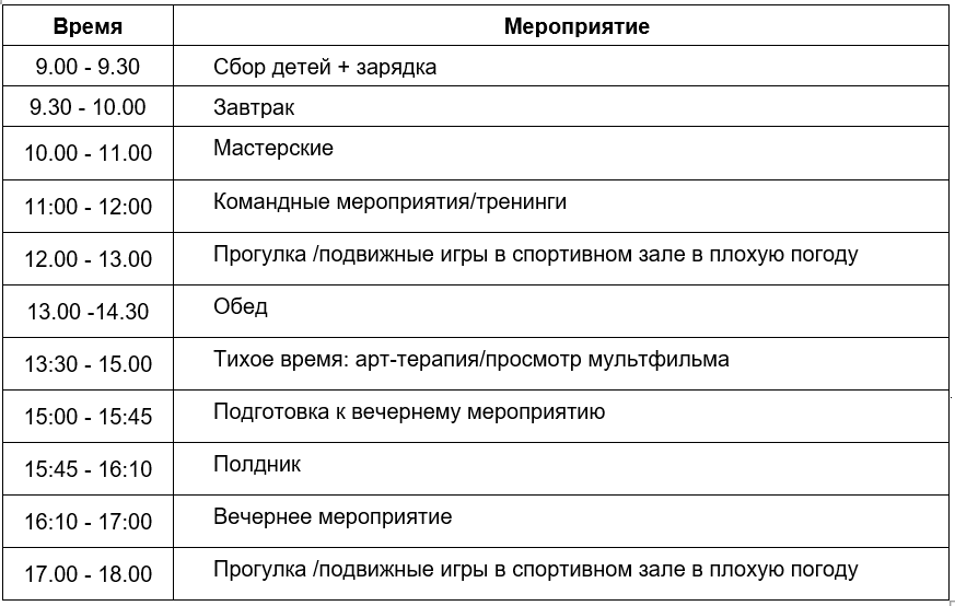 Распорядок дня: